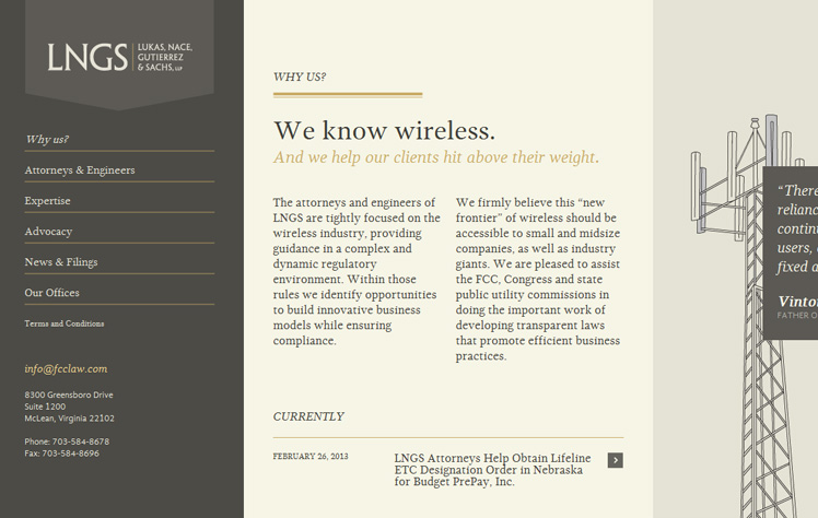 http://www.fcclaw.com/ Navegación horizontal y ajax (ganó un “Awwwards” award en South Carolina)